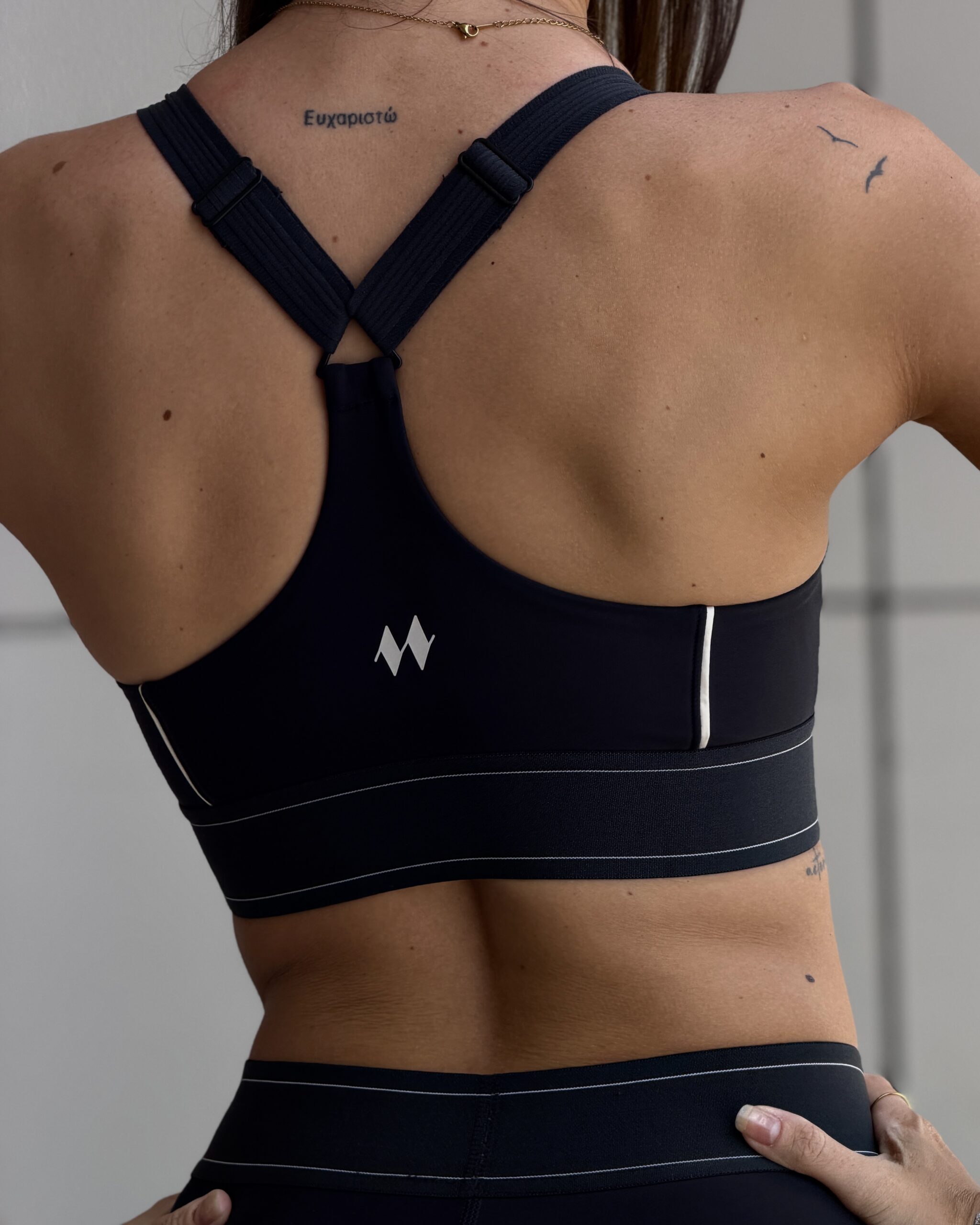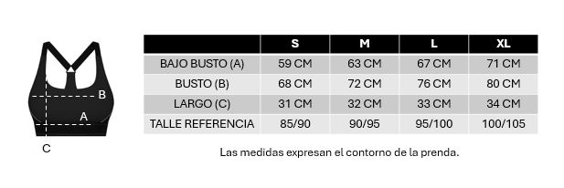Top de lycra de poliamida premium con correderas, elastico bajo busto, tasas desmontables y doble tela para mayor soporte.
